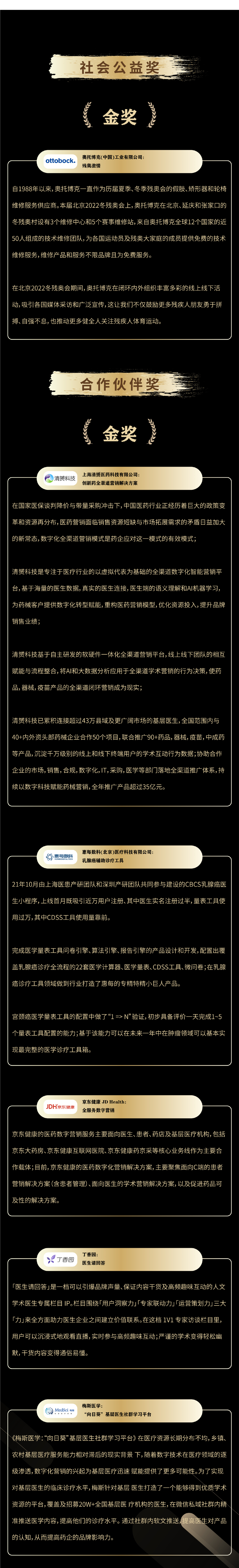 在2022金营奖评选中,Maserland联合8位评委大咖,挖掘行业中伟大先进尝试,恪守着公平公正的原则,为参会作品负责人在线上的精彩演绎进行点评,见证了医疗营销人在数字化取得的卓越成效。